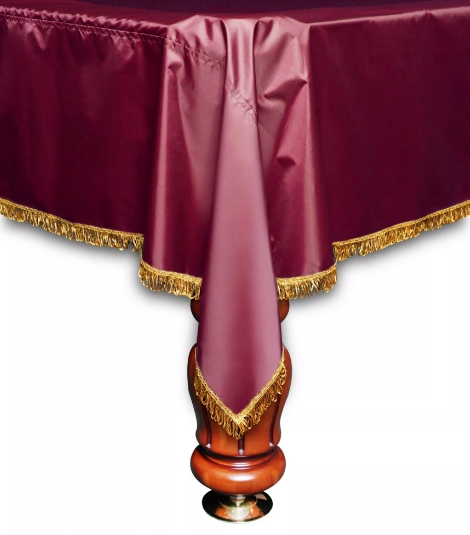 У нас представлены очень стильные декоративные покрывала для бильярдного стола. У такого покрывала зелёный цвет, а по краю оно украшено золотистой бахромой. Такое покрывало будет прекрасно смотреться в интерьере любого бильярдного помещения, будь то комната, ресторан или бильярдный клуб. Изготовлено такое покрывало из нейлона, который подбирается в соответствии с назначением. Он специально обработан влагостойкой пропиткой. Благодаря такой пропитке ткань будет отталкивать воду, также она будет более гладкой и плотной.